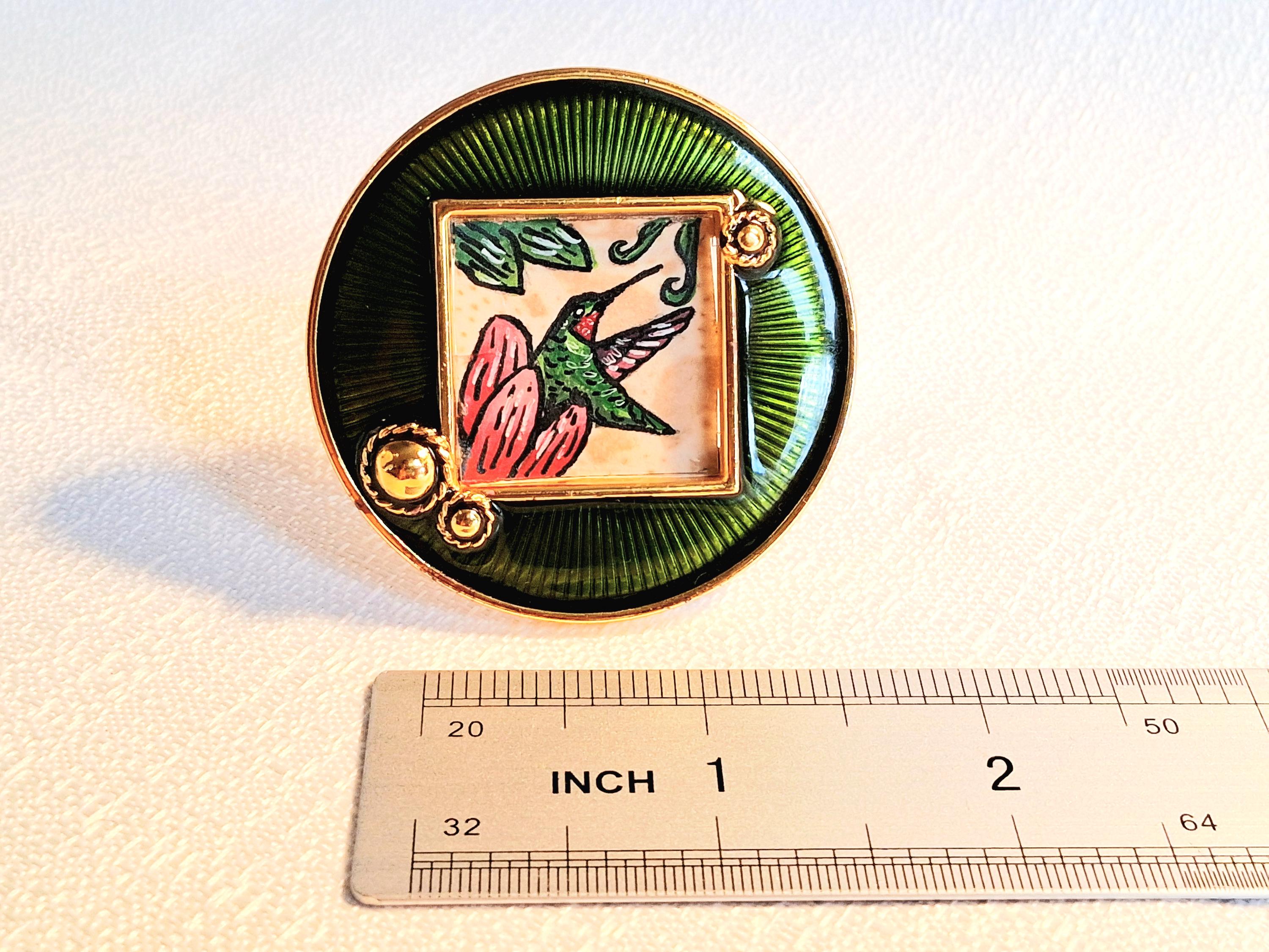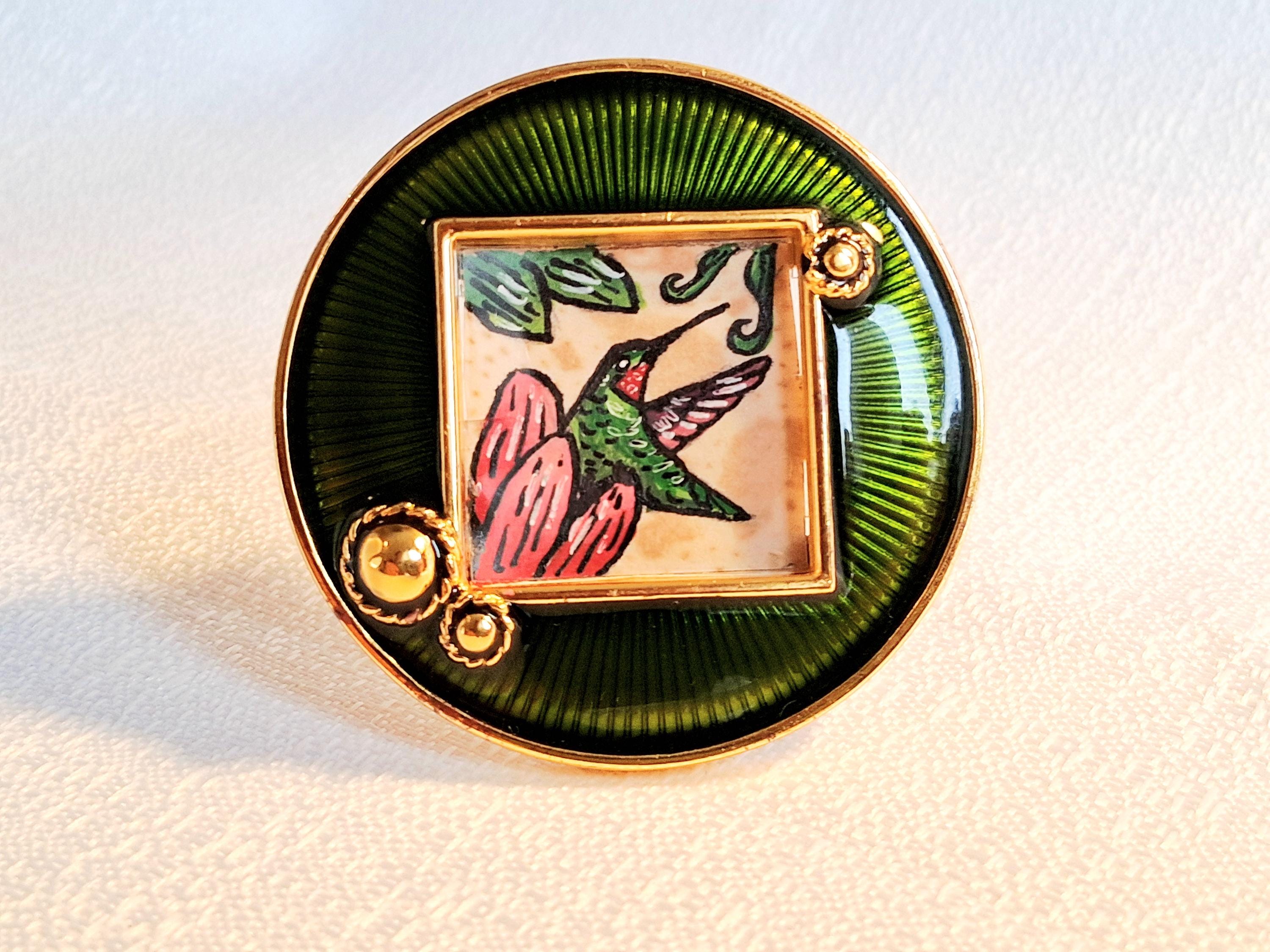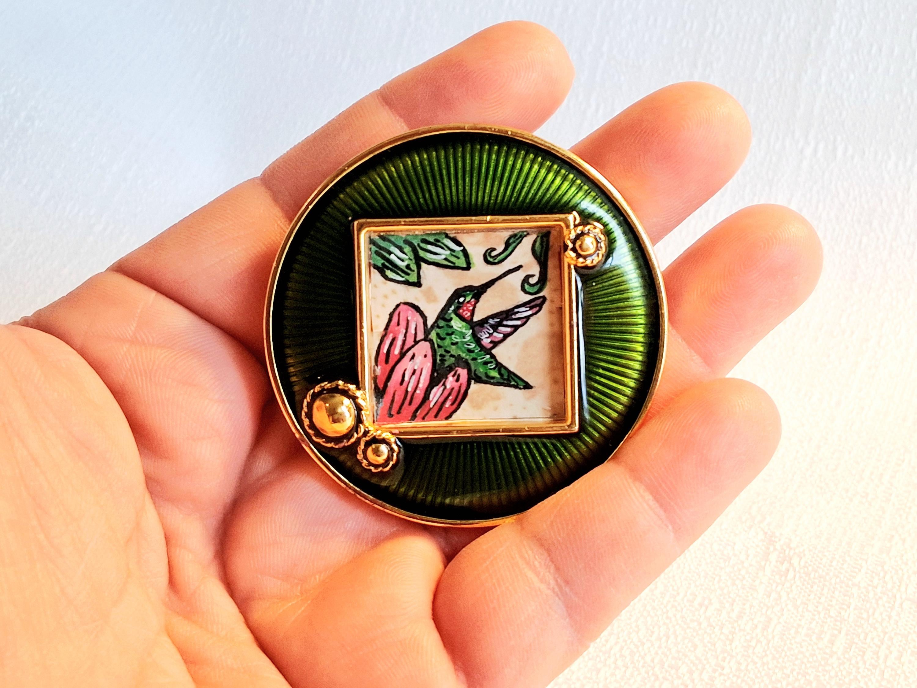 Tiny miniature original art, vintage enamel brooch, watercolor painting, small gifts